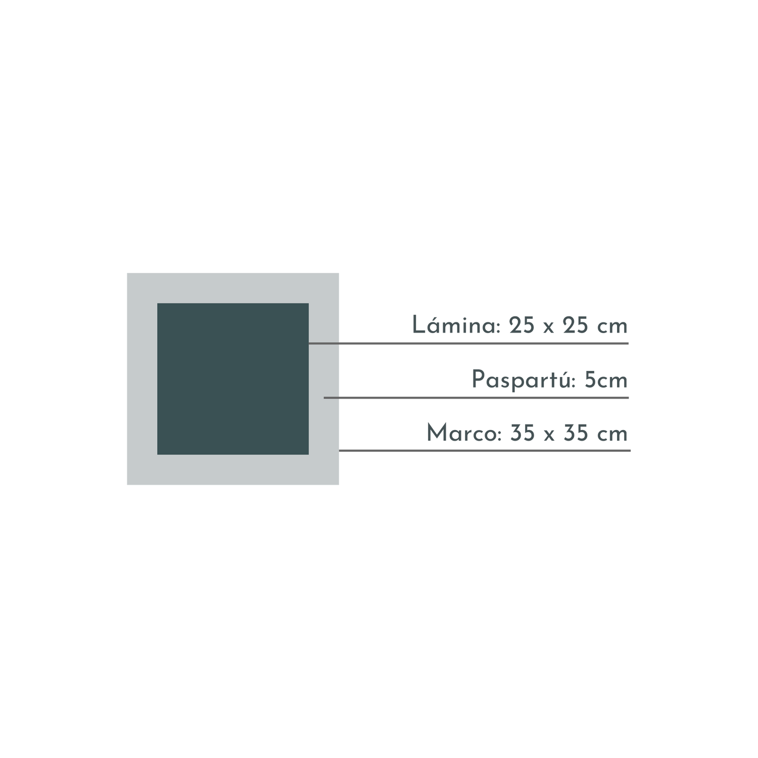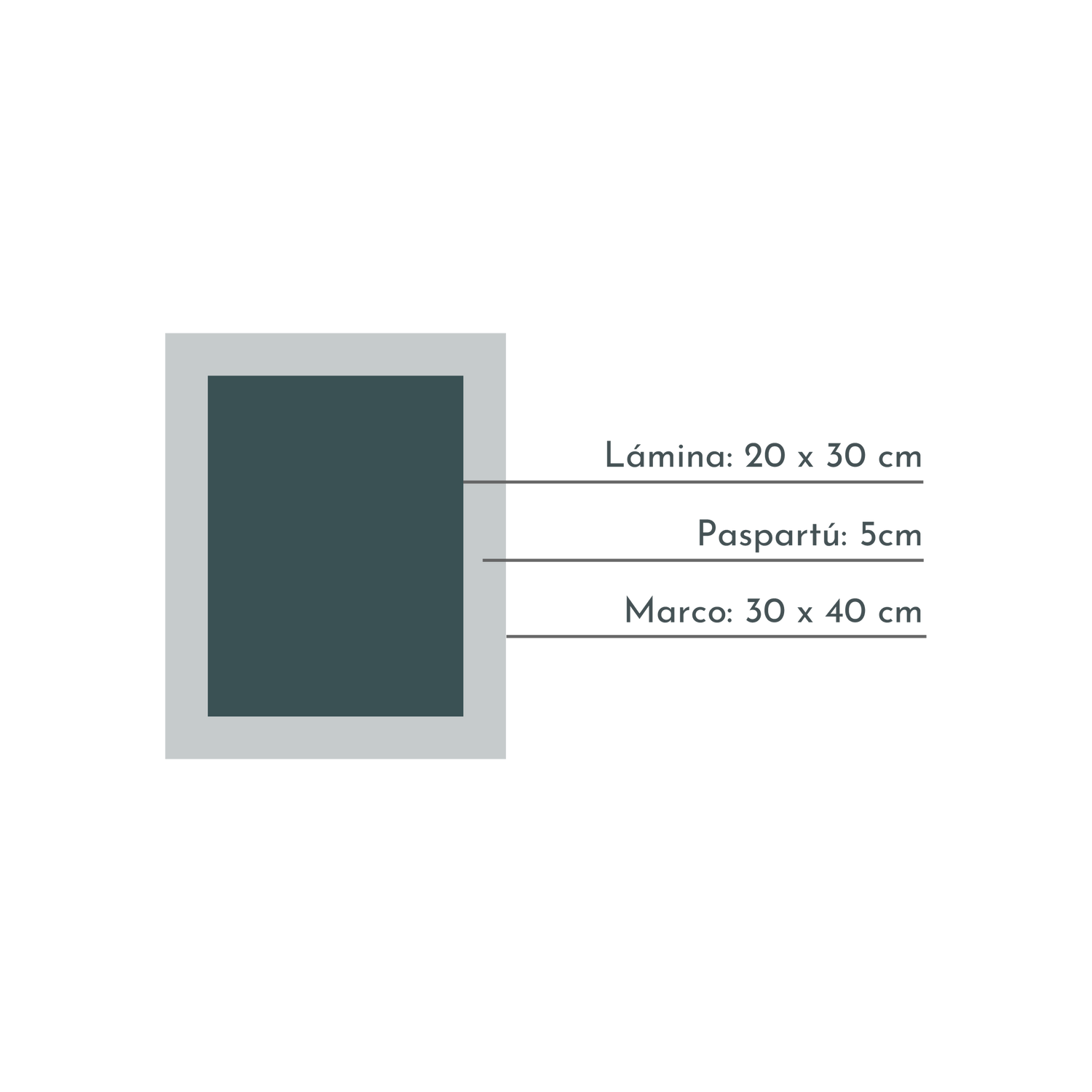 Tenemos 4 tamaños prediseñados y aquí puedes ver las medidas de cada parte de tu obra. Para que, cuando te llegue, sea exactamente lo que estás buscando en tu Art and Map.